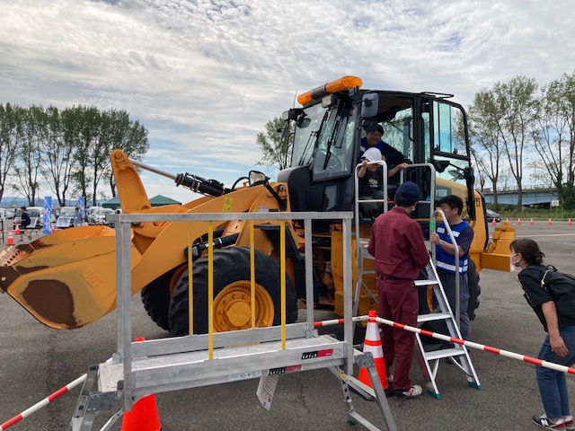 実際のショベルカーの助手席に乗って会場内を走ります !